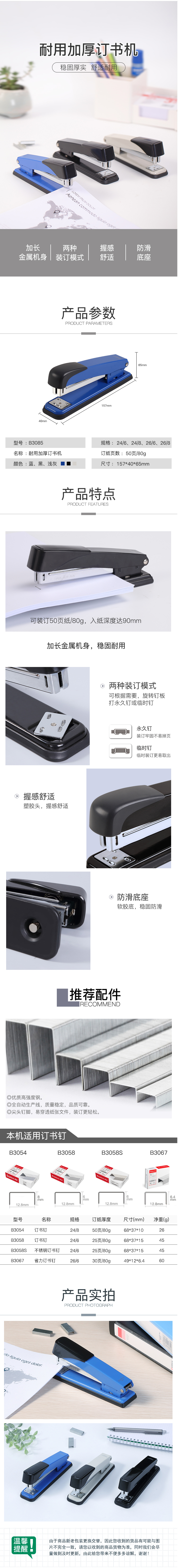 商品名稱:齊心 B3085 50頁訂書機 12#金屬機