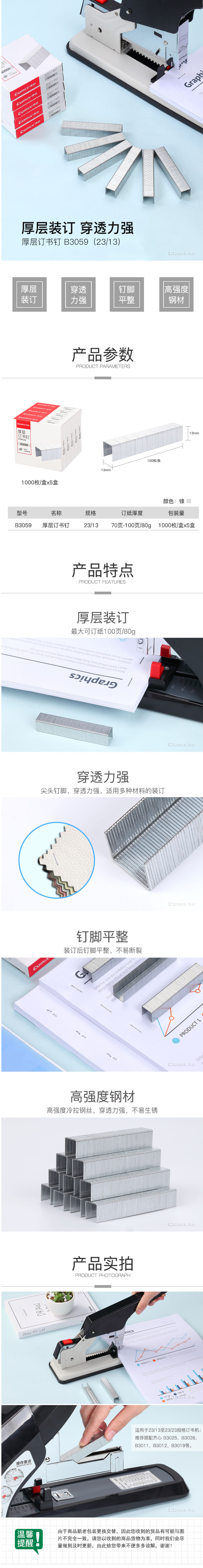商品名稱:齊心 B3059 厚層訂書(shū)釘(23/13)100頁(yè) 1000枚/盒