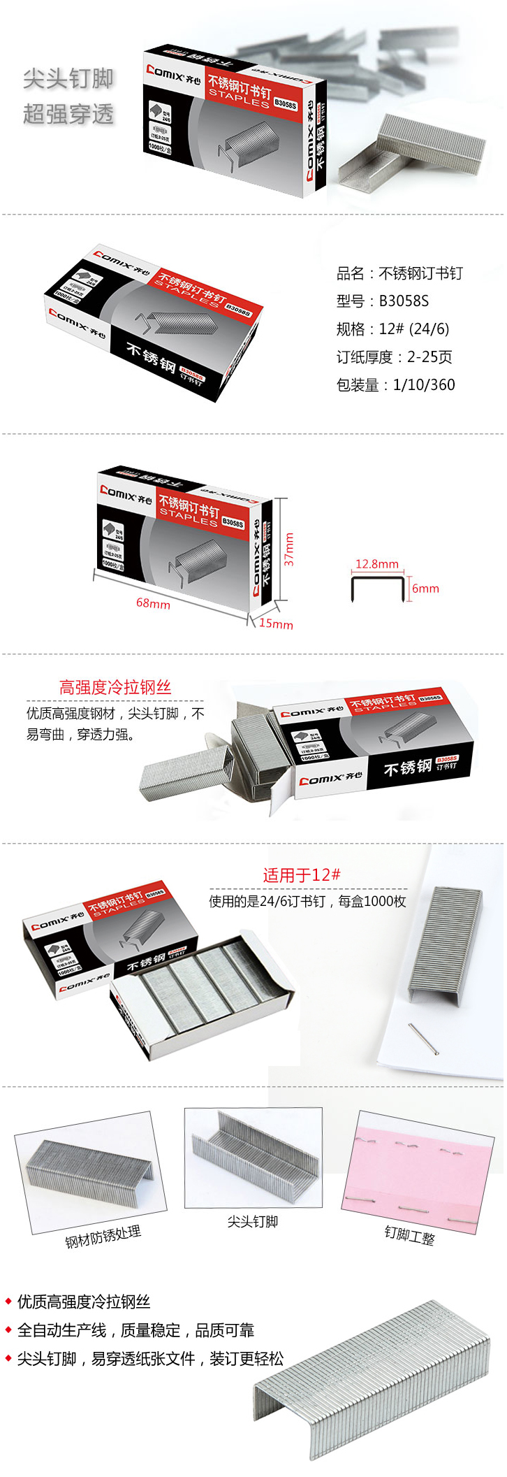 商品名稱:齊心 B3058S 不銹鋼訂書釘 24/6