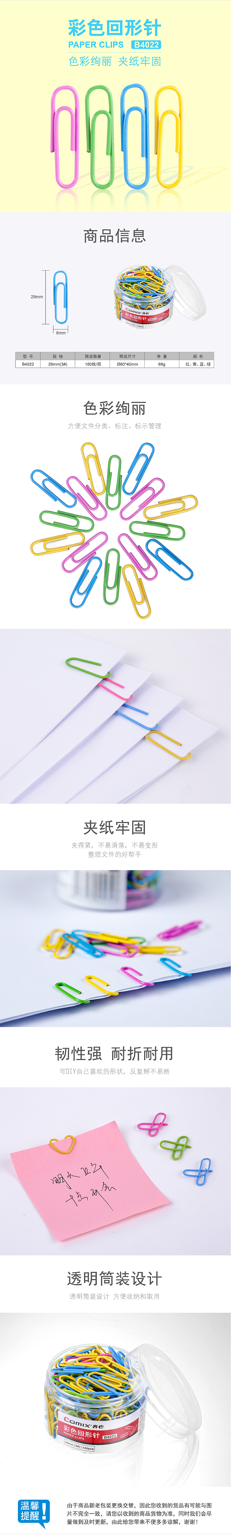 商品名稱:齊心 B4022 彩色回形針 (3#29mm)