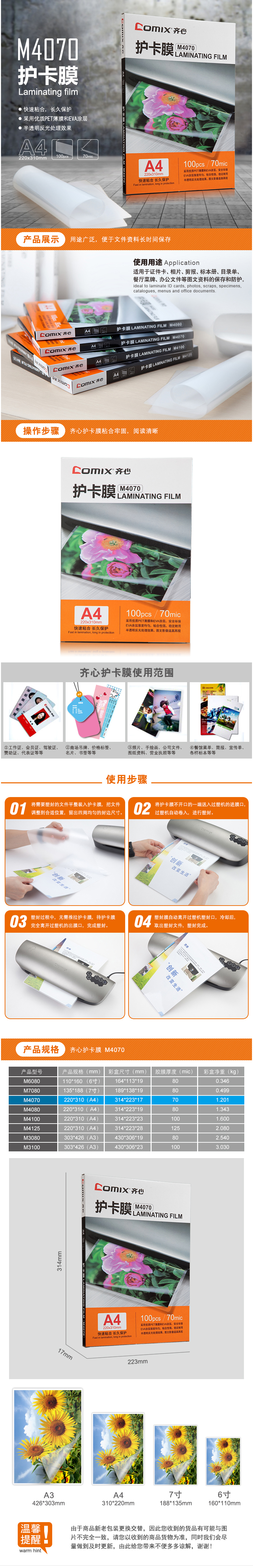 商品名稱:齊心 M4070高清護卡膜 100張/SET