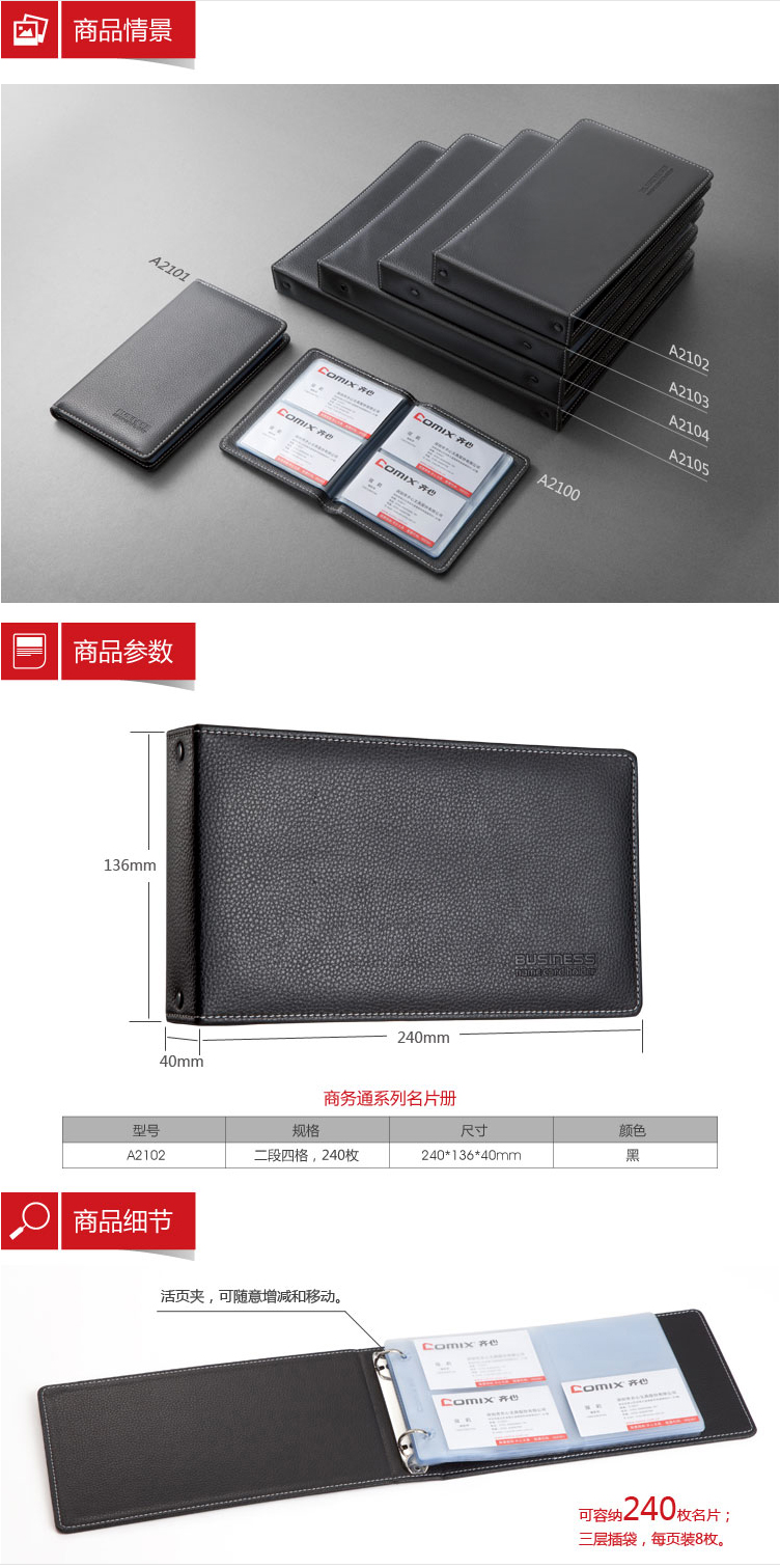 商品名稱:齊心 A2102 商務名片冊 二段四格/240枚