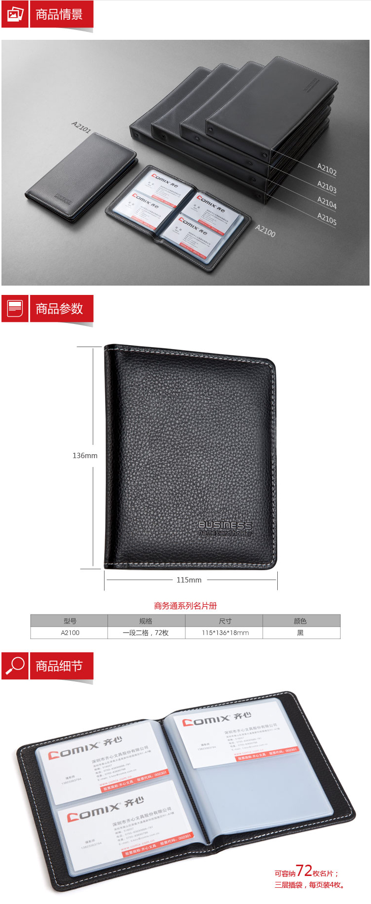 商品名稱:齊心 A2100 商務(wù)名片冊(cè) 一段二格/72枚