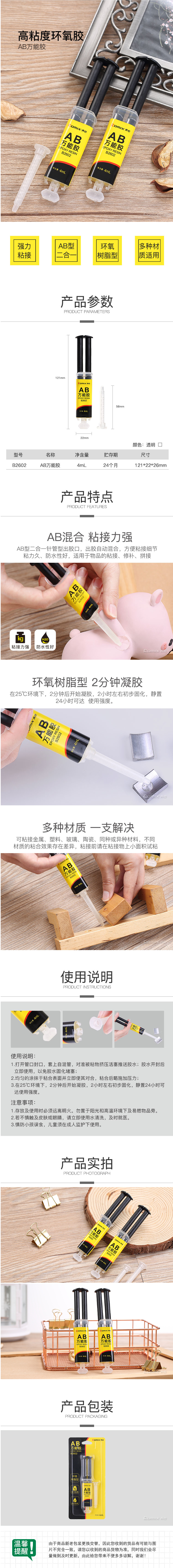 商品名稱:齊心 B2602 AB萬能膠 4mL