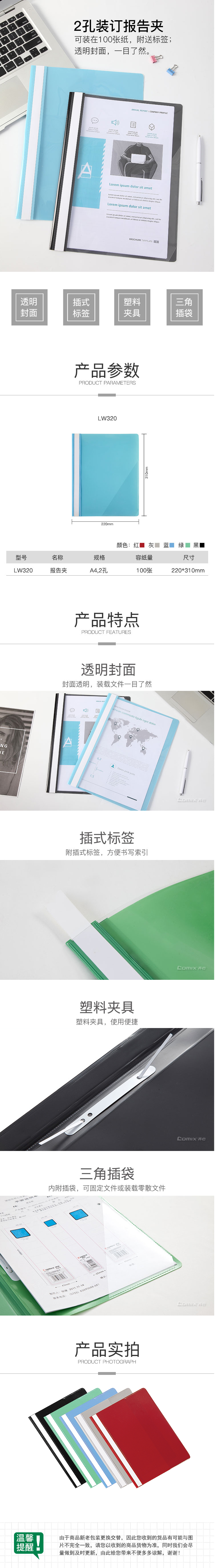 商品名稱:齊心 LW320 辦公必備大容量報告夾 A4 2孔裝訂式 100張