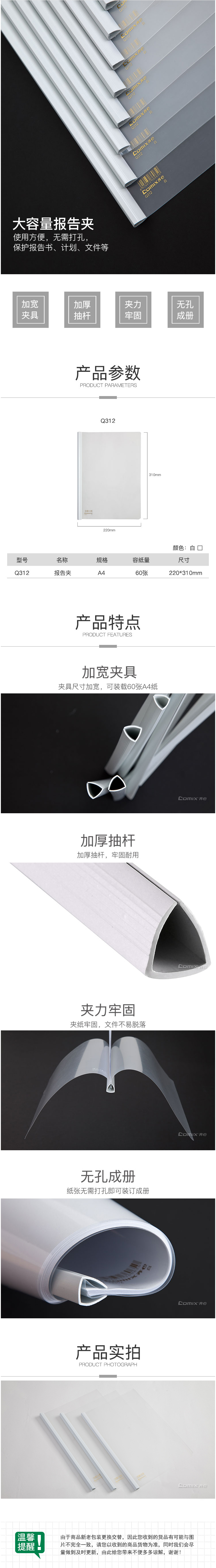 商品名稱:齊心 Q312 大容量 報告夾 A4 抽桿式 60張