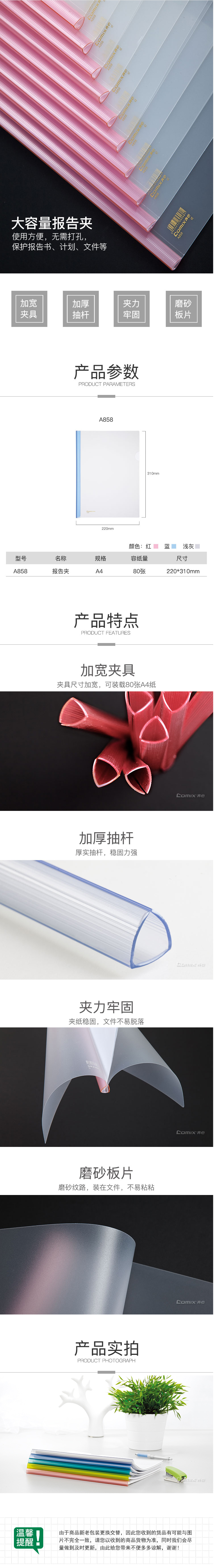 商品名稱:齊心 A858 大容量加厚型報(bào)告夾 A4 抽桿式 80張
