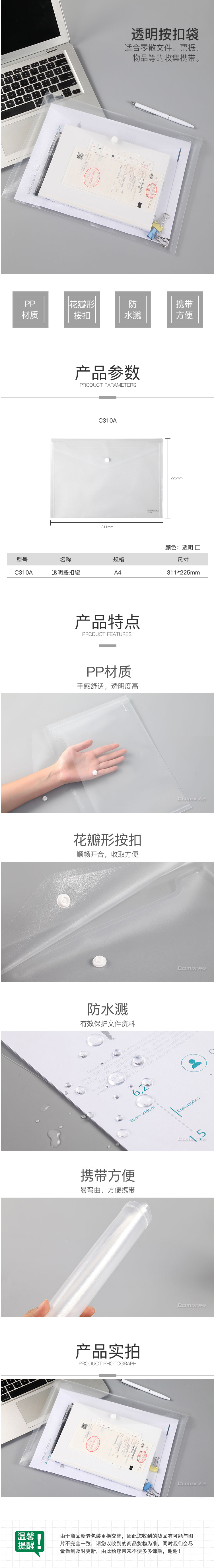 商品名稱:齊心 C310A 防反光 按扣文件袋 A4 10個(gè)/套