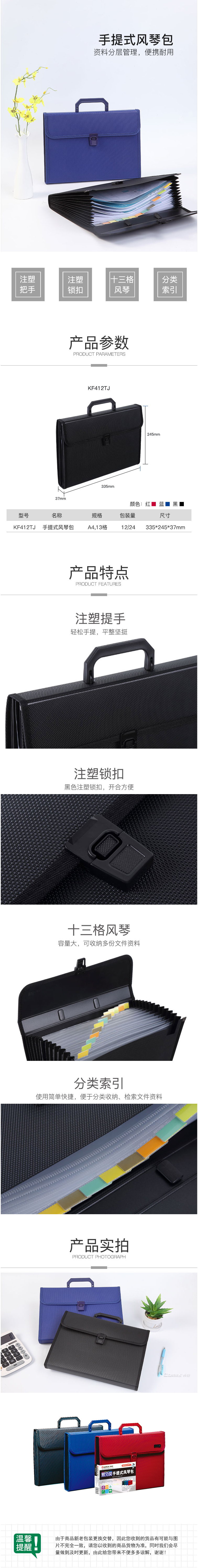 商品名稱:齊心 KF412TJ 易分類手提式風(fēng)琴包 A4 13袋