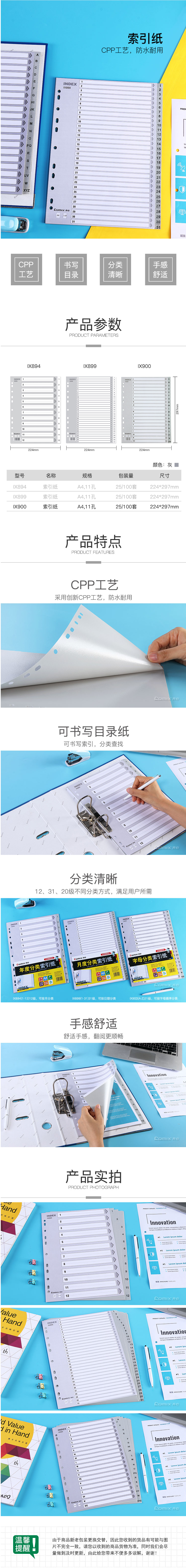 > 齊心 IX900 易分類 字母索引紙 A4 21頁A-Z 11孔 PP