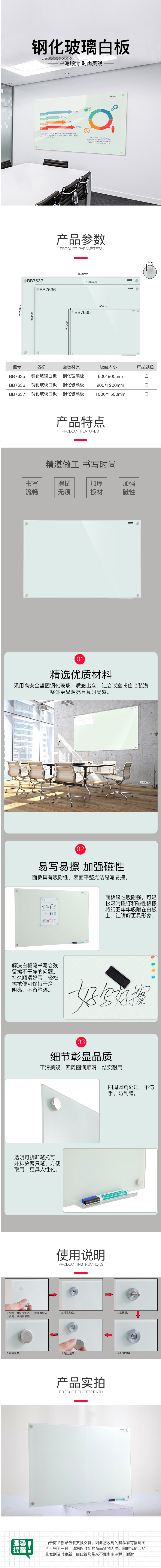 齊心 BB7636 鋼化玻璃白板(120*90cm)