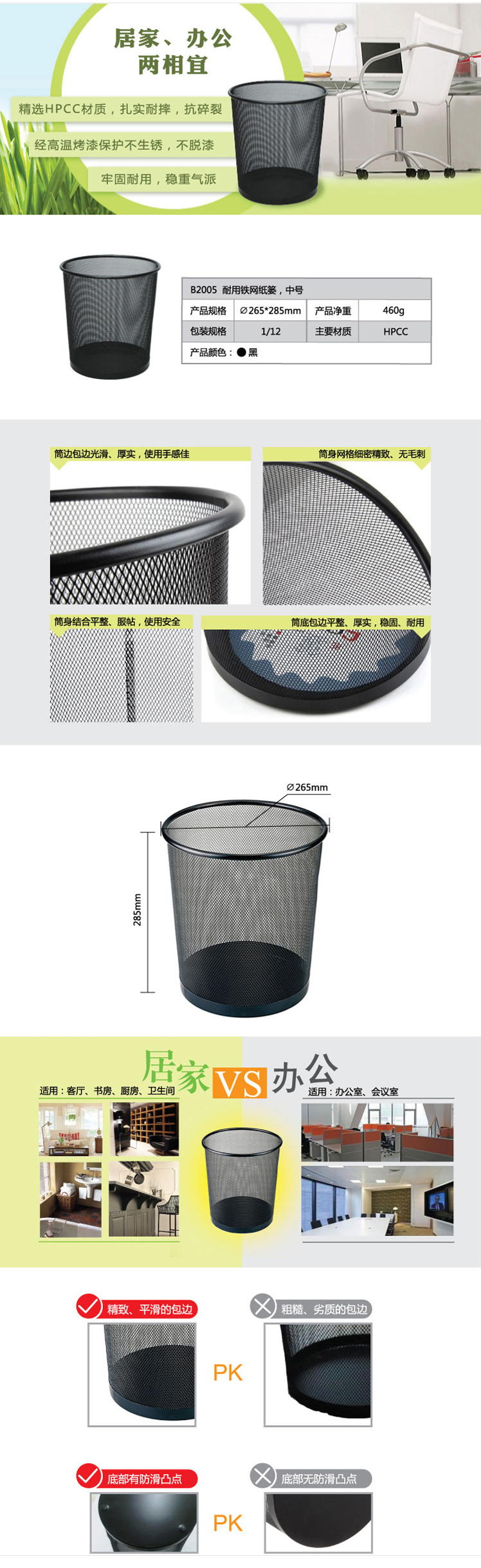 商品名稱:齊心 B2005 耐用鐵網(wǎng)圓紙簍 中號