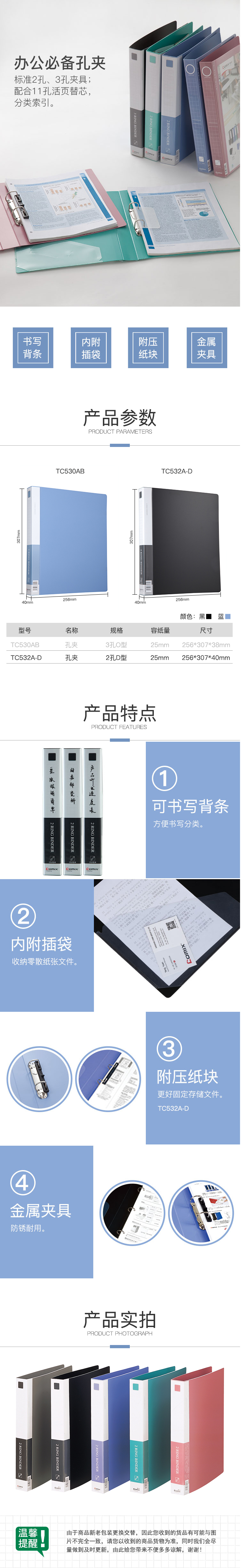商品名稱(chēng):齊心 TC532A-D 辦公必備文件夾 A4 1.5寸2孔D型夾