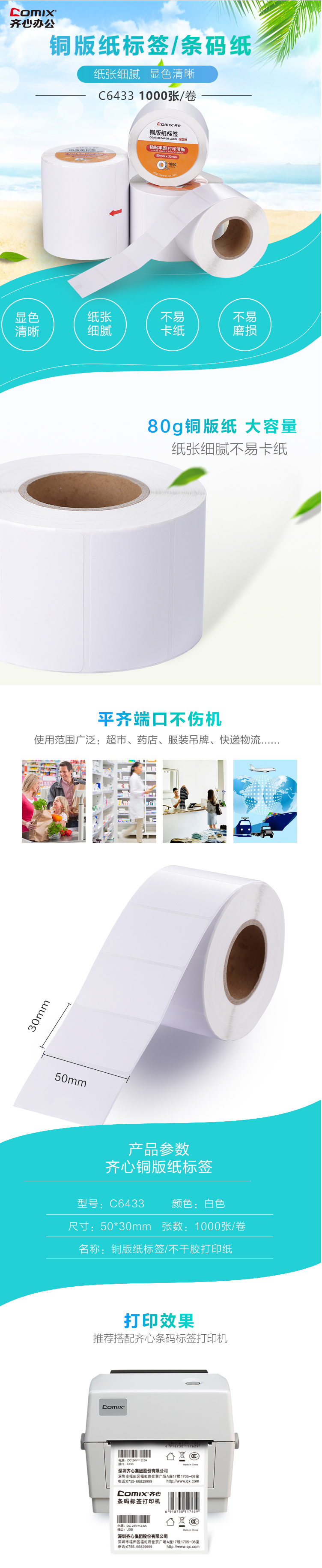 商品名稱:齊心 C6433 銅版紙標(biāo)簽 50*30mm 1000張
