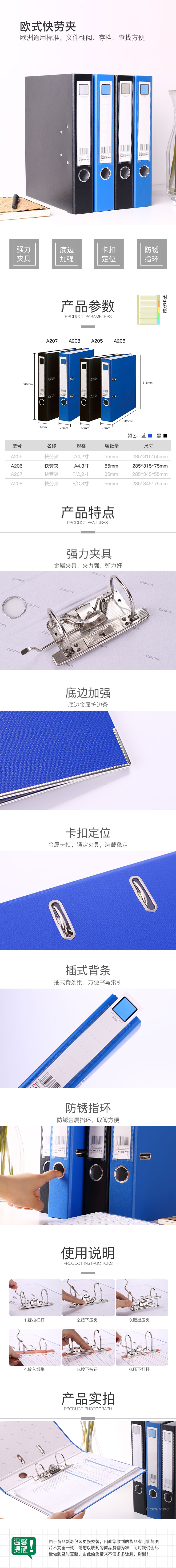 商品名稱:齊心 A206 A4 3寸半包膠快勞夾