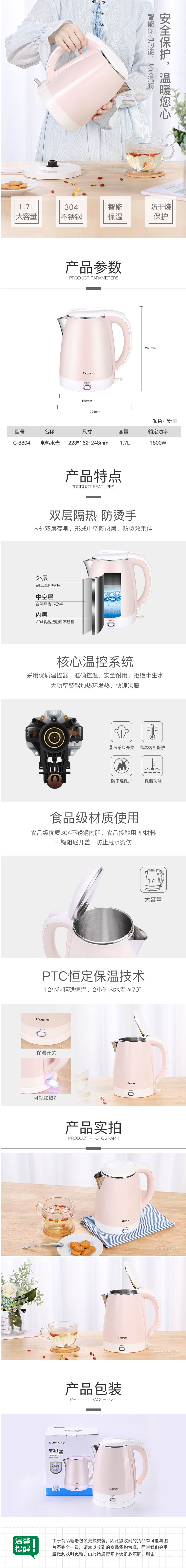 商品名稱:齊心 C-8804 電熱水壺