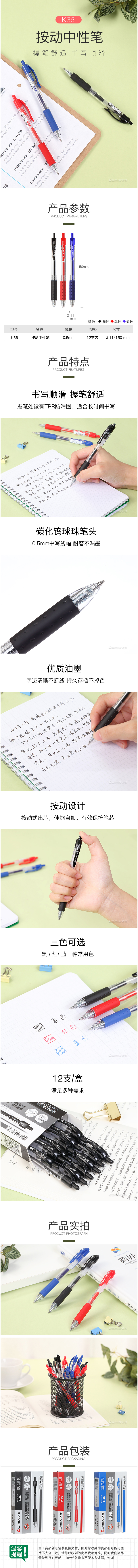 > 齊心 K36 按動式中性筆0.5mm 匹配筆芯R929