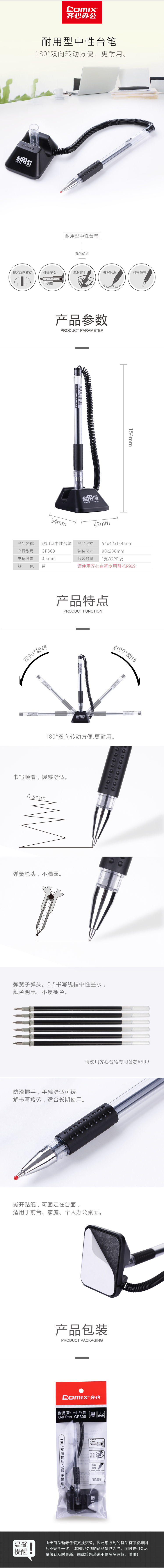 商品名稱:齊心 GP308 耐用型臺(tái)筆0.5mm 匹配筆芯R999