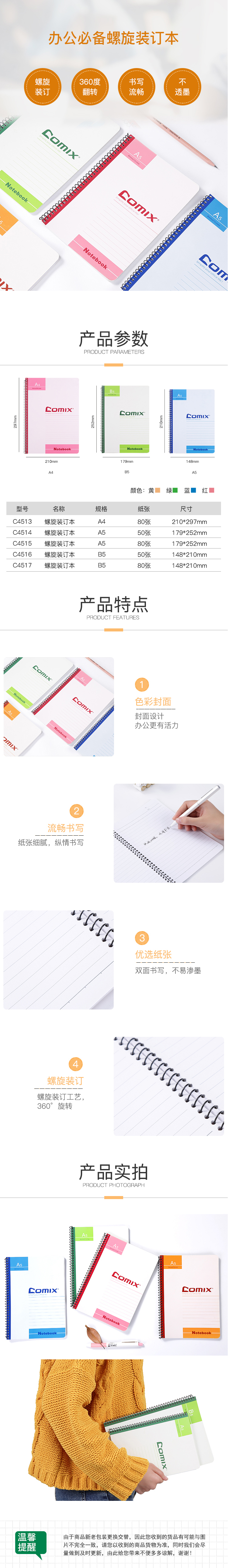 商品名稱:齊心 C4514 辦公必備螺旋裝訂本 A5 50張