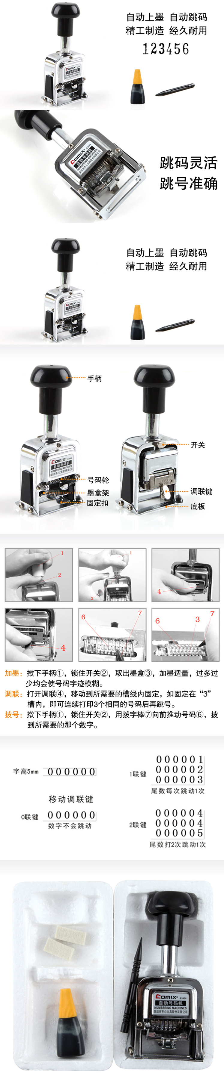 商品名稱:齊心 B3906 耐用精鋼自動號碼機(jī) 6位