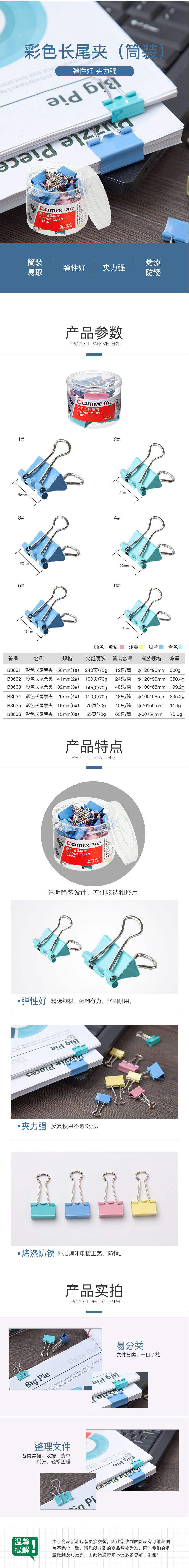 商品名稱:齊心 B3634長尾票夾 4# 25mm 48只/筒