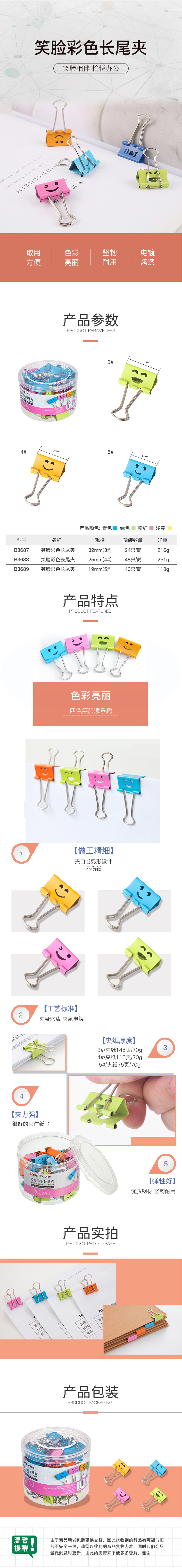 齊心 B3688 笑臉彩色長尾票夾 4號 1筒48只