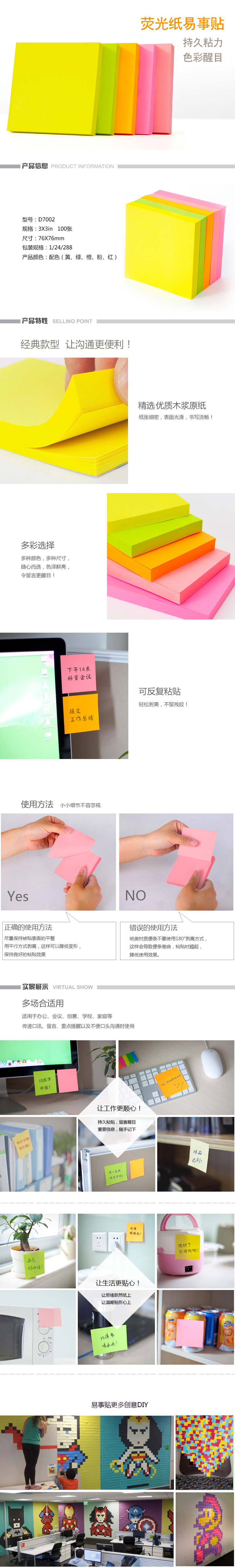 商品名稱:齊心 D7002 熒光紙易事貼 3\\\\\\\"*3\\\\\\\" 100張