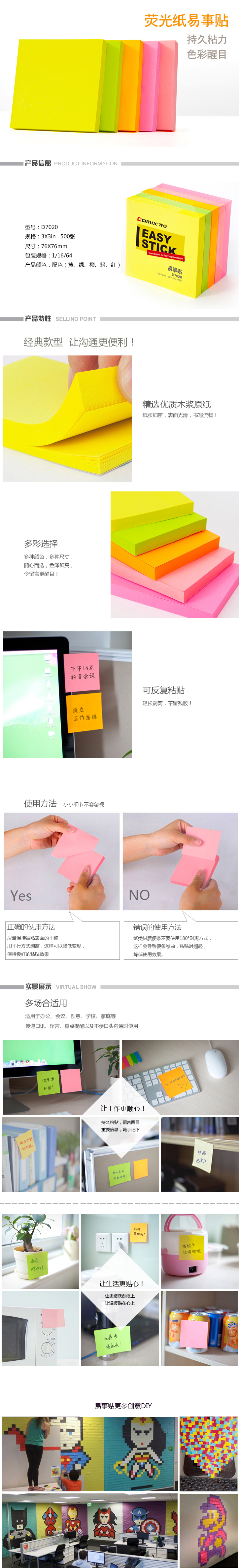 商品名稱:齊心 D7020 熒光紙易事貼 3\\\\\\\"*3\\\\\\\" 100張*5