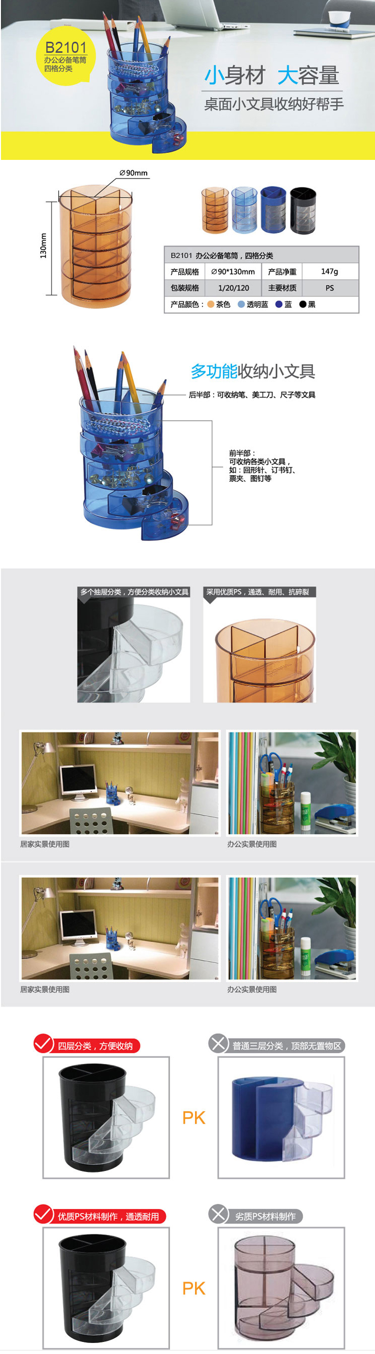 商品名稱:齊心 B2101 辦公筆筒 四格分類
