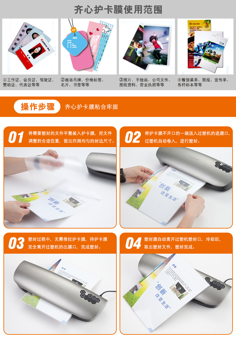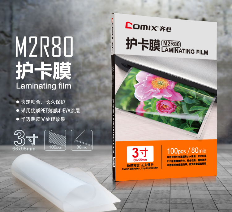 商品名稱:齊心 M2R80 內(nèi)銷透明高清護(hù)卡膜 66*95mm*80mic
