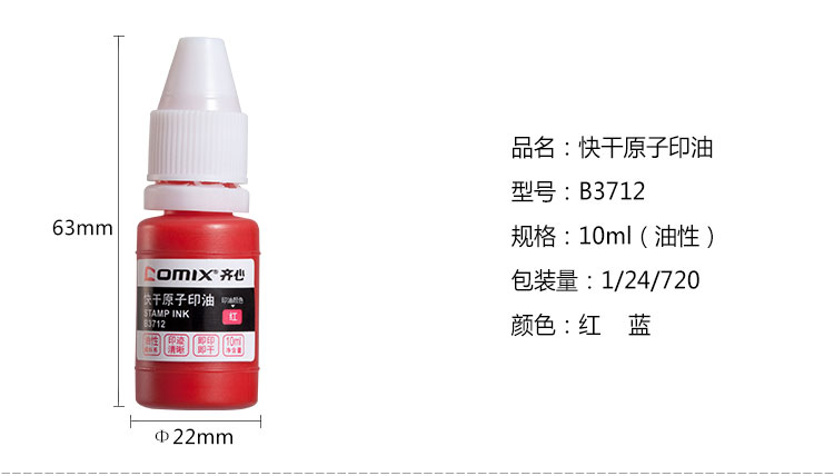 商品名稱:齊心 B3712 快干原子印油 10ml