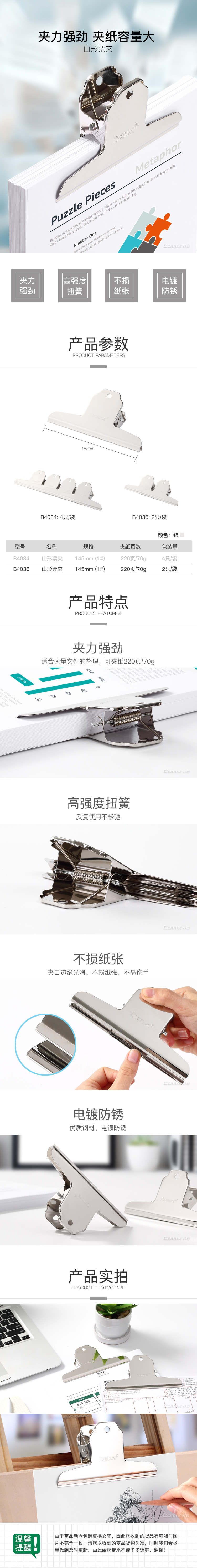 齊心 B4036 山形夾 1#145mm(2只/套)