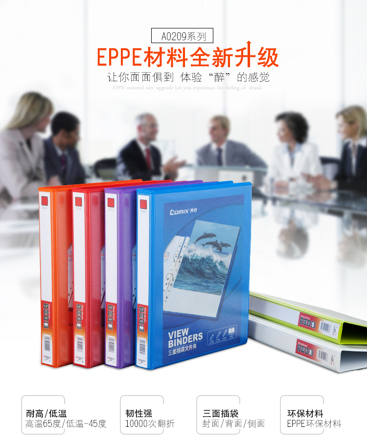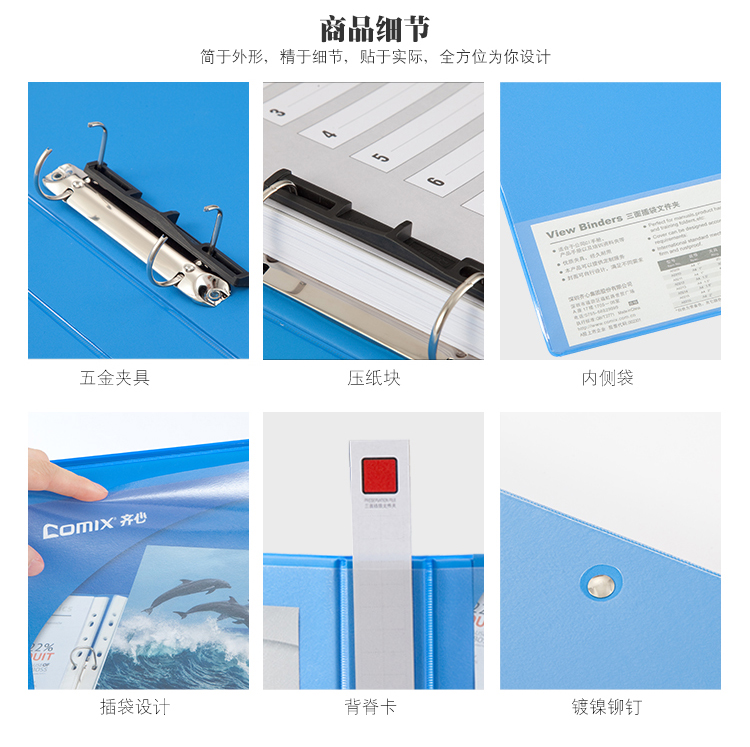 商品名稱:齊心 A0211 易展示 美式三面插袋文件夾 A4 1寸4孔D型夾