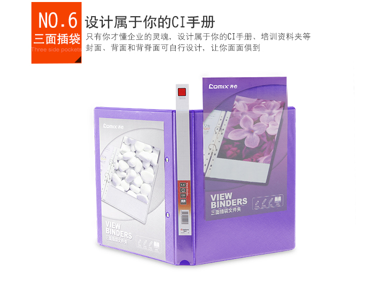 商品名稱:齊心 A0214 易展示 美式三面插袋文件夾 A4 1.5寸4孔D型夾