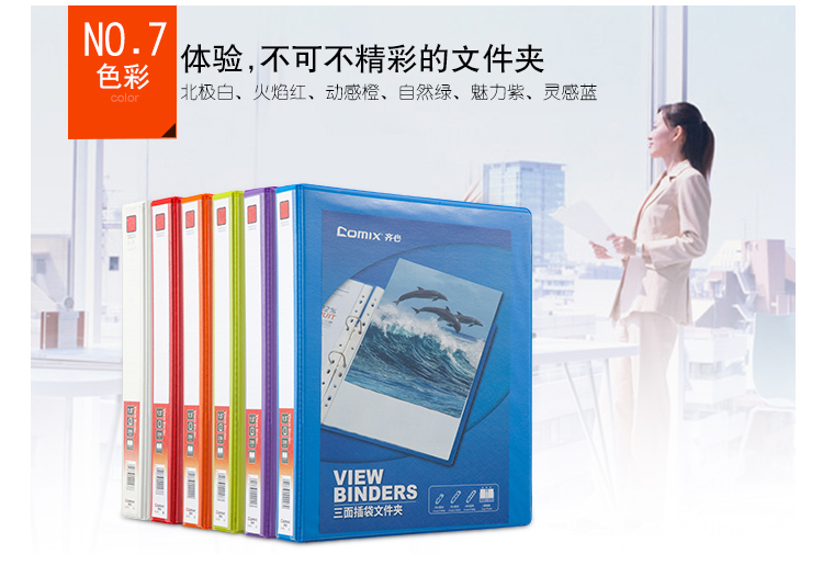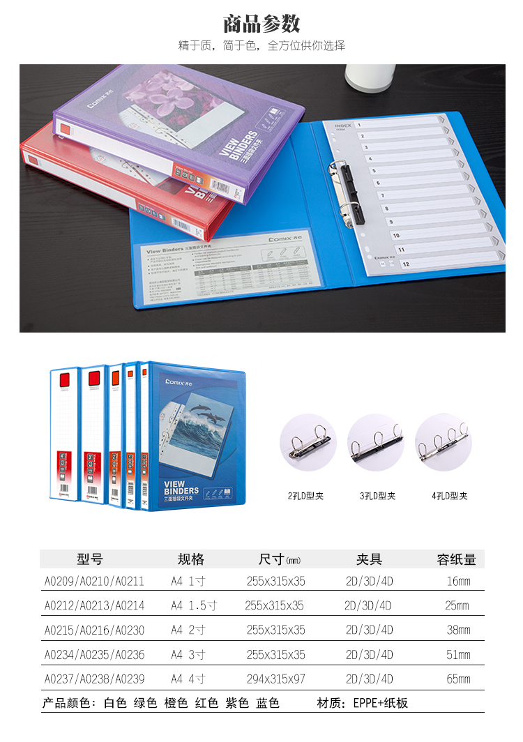 商品名稱:齊心 A0239 易展示 美式三面插袋文件夾 A4 4寸4孔D型夾