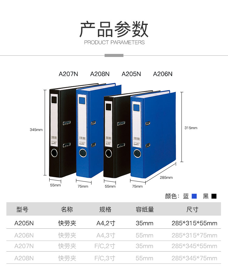 商品名稱:齊心 A205N 歐式快勞夾 A4 2寸