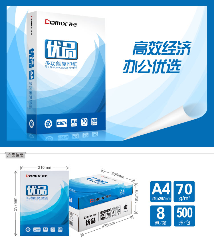 商品名稱:齊心 C3674-8 優(yōu)品復印紙 A4 70g