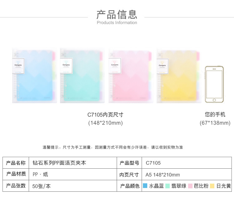 商品名稱:齊心 C7105 Compera 鉆石系列 20孔活頁夾 A5 50張