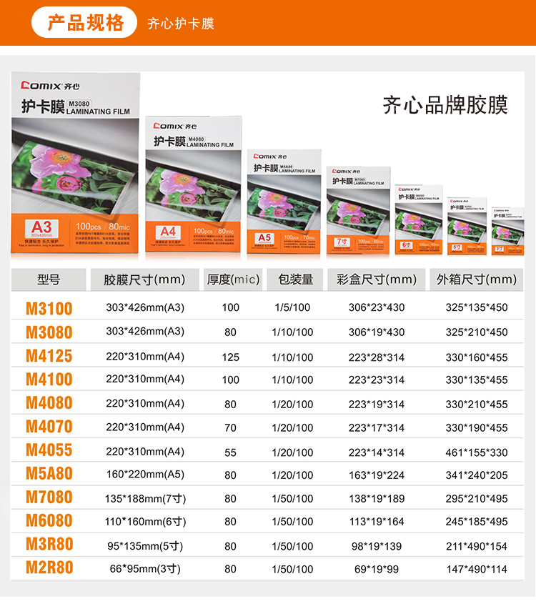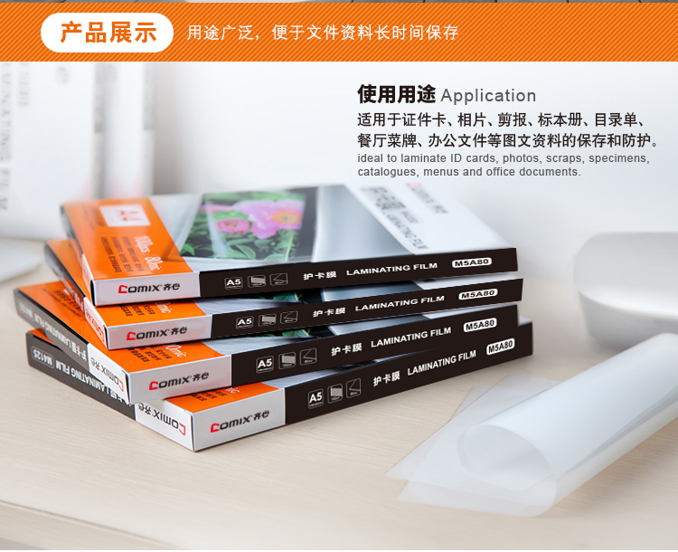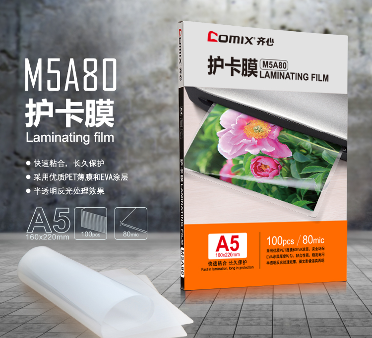 商品名稱(chēng):齊心 M5A80 內(nèi)銷(xiāo)透明高清護(hù)卡膜 160*220mm*80mic