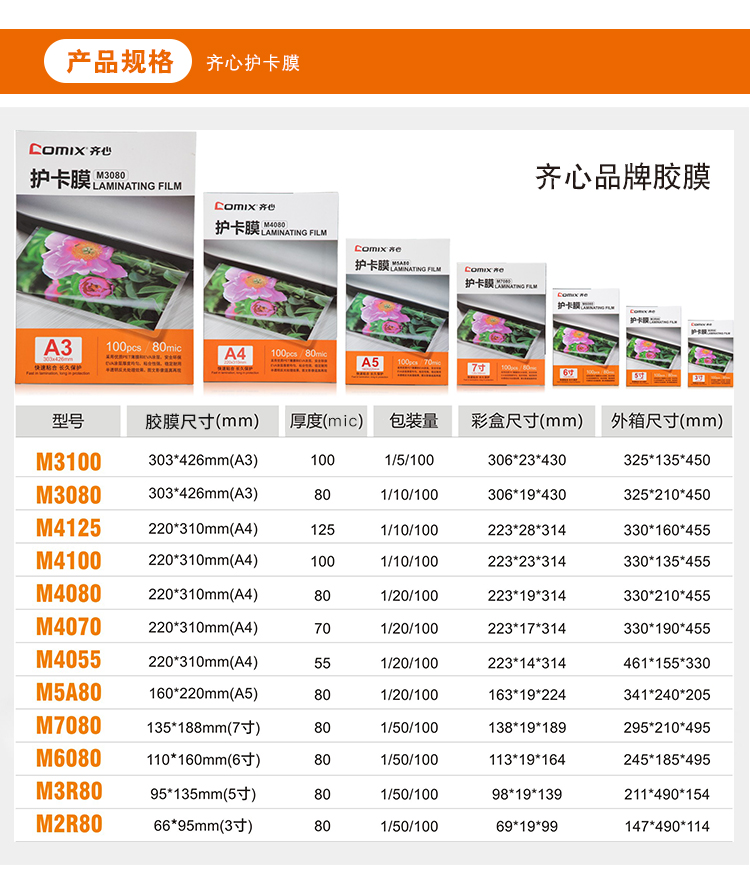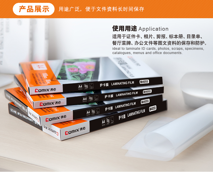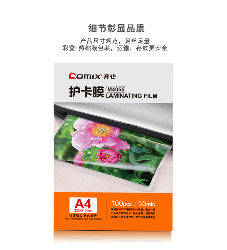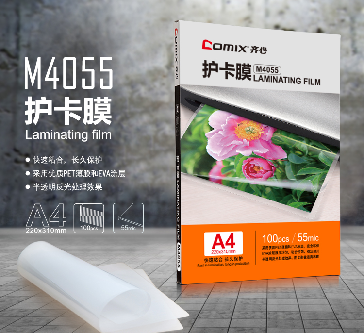 商品名稱:齊心 M4055 內(nèi)銷透明高清護卡膜 220*310mm*55mic