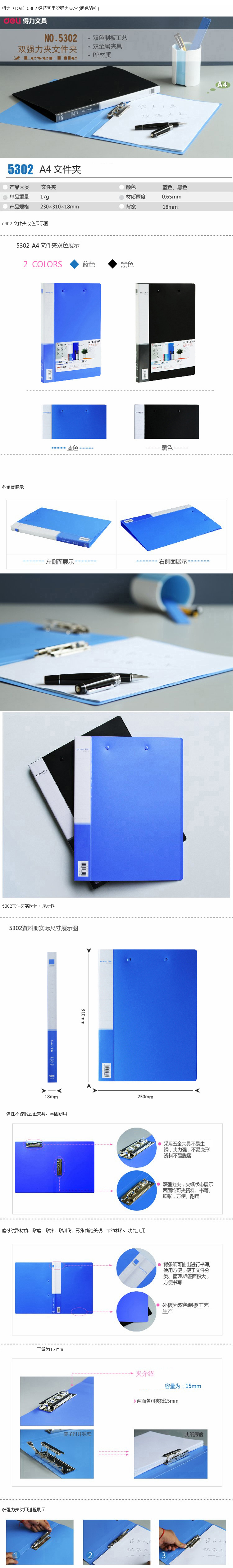 商品名稱:得力5302文件夾(藍(lán))(只)