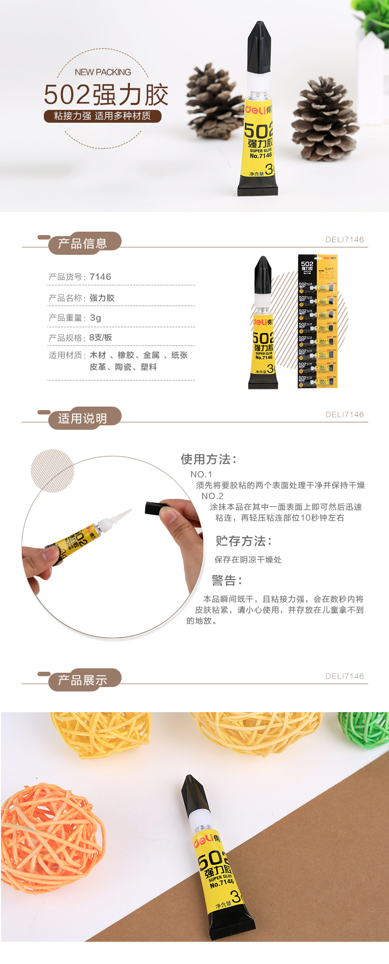> 得力7146-502強(qiáng)力膠3g(瓶)