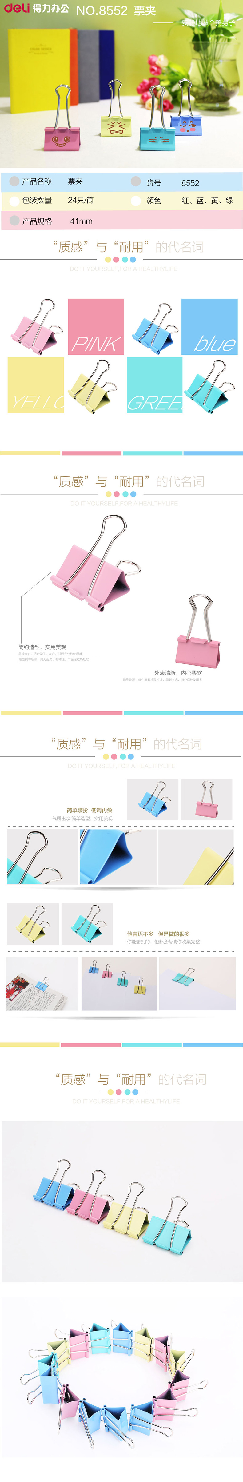 > 得力8552-2#彩色長尾票夾41mm(筒裝)(混)(24只/筒)