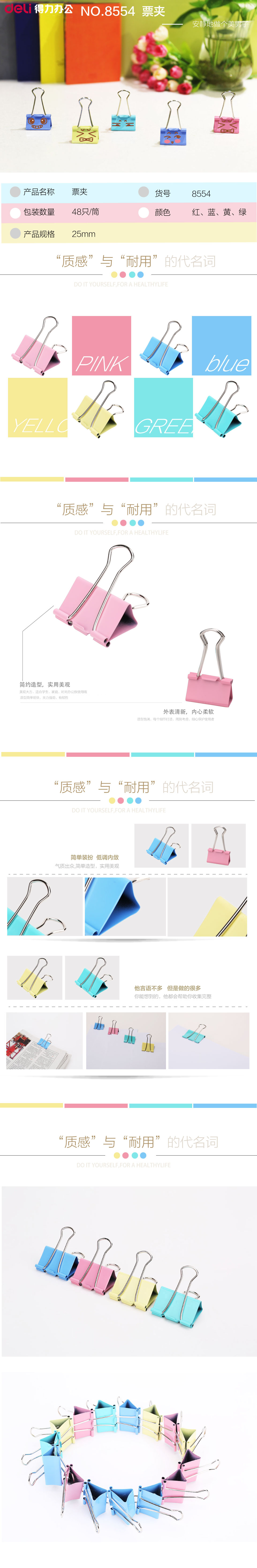 > 得力8554彩色長尾票夾25mm筒裝(混)(48只/筒)