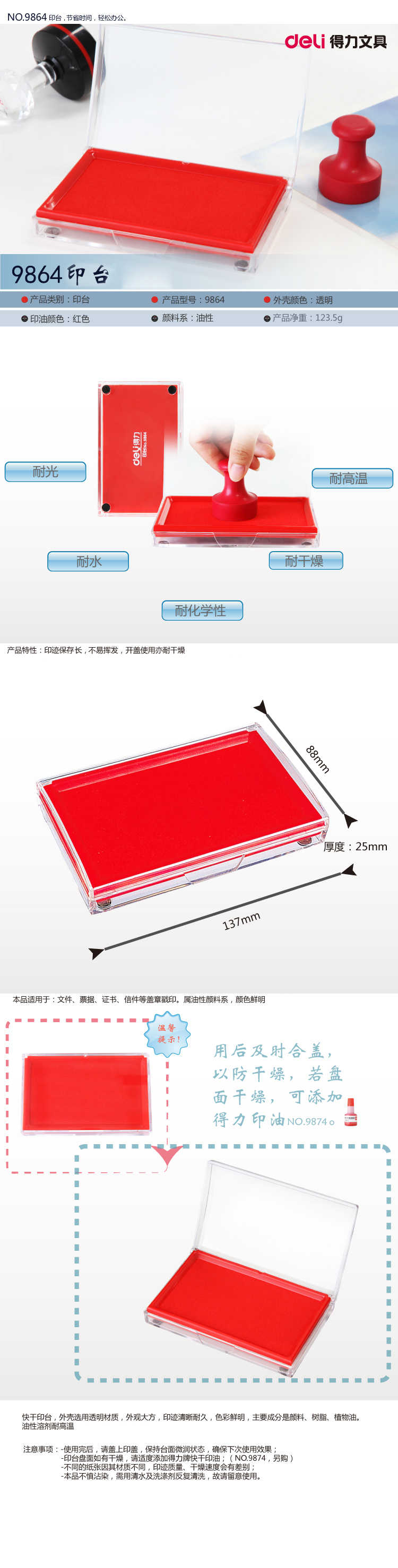 商品名稱:得力9864快干印臺(tái)(紅)(只)