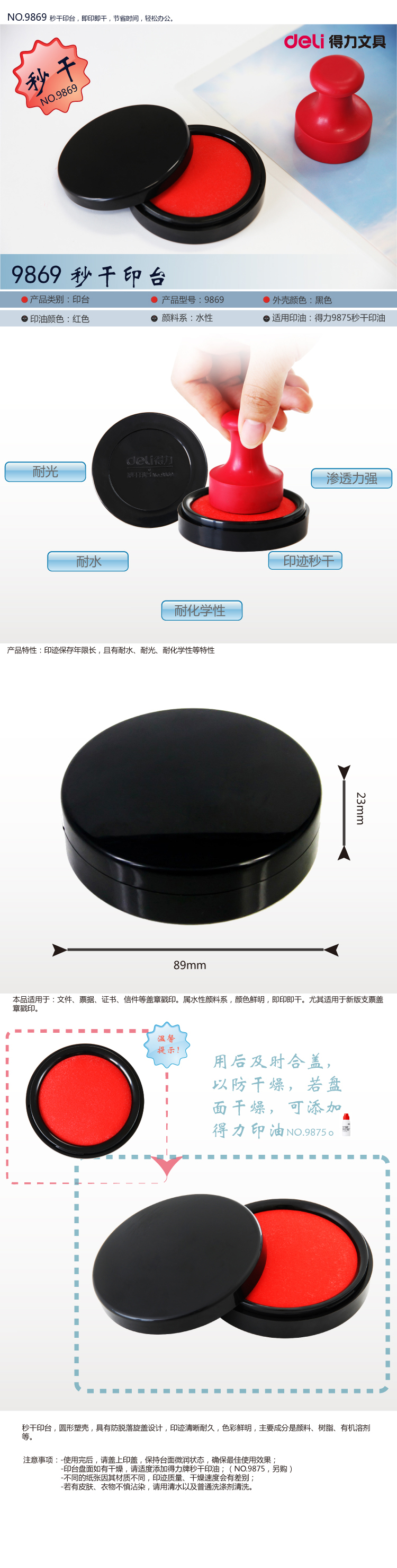 商品名稱:得力9869秒干印臺(tái)(紅)(只)