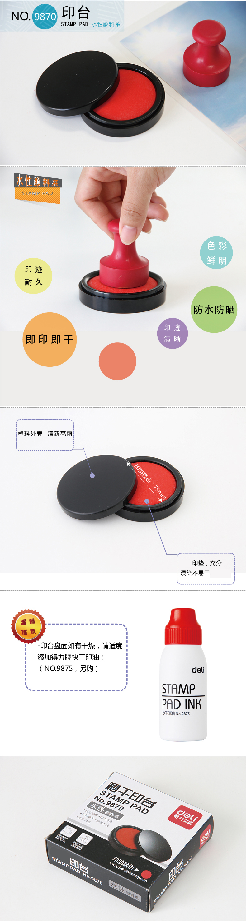 商品名稱:得力9870秒干印臺(tái)(紅)(只)