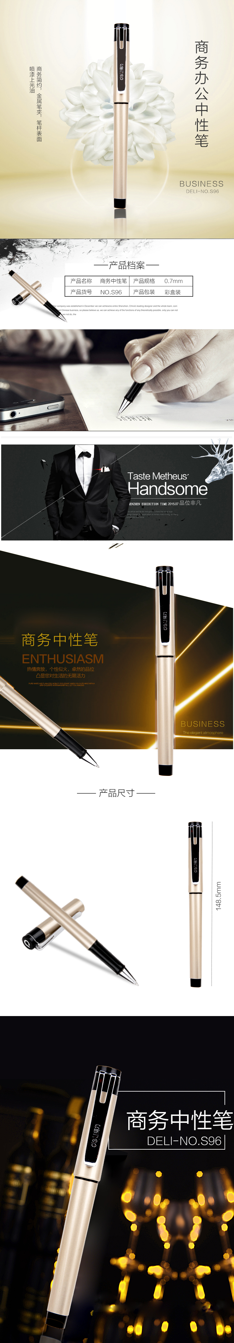 得力S96中性筆0.7mm子彈頭(黑)