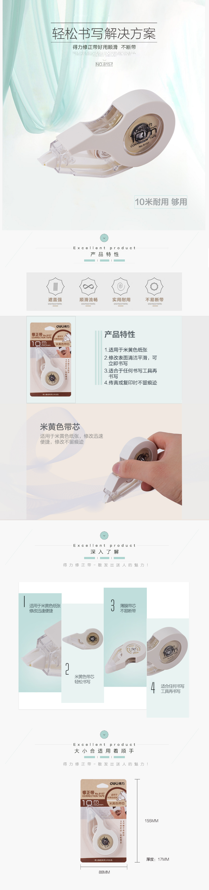 商品名稱:得力8157米黃帶芯修正帶(白灰)