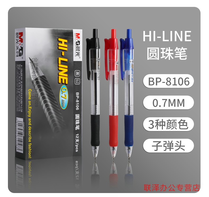 商品名稱:晨光黑色圓珠筆BP8106按動(dòng)雅致圓珠筆 0.7mm黑色 12支/盒裝